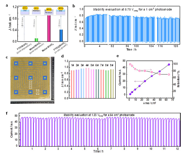 圖3. 嵌入式BiVO4光電極的光電化學(xué)分解水活性評價