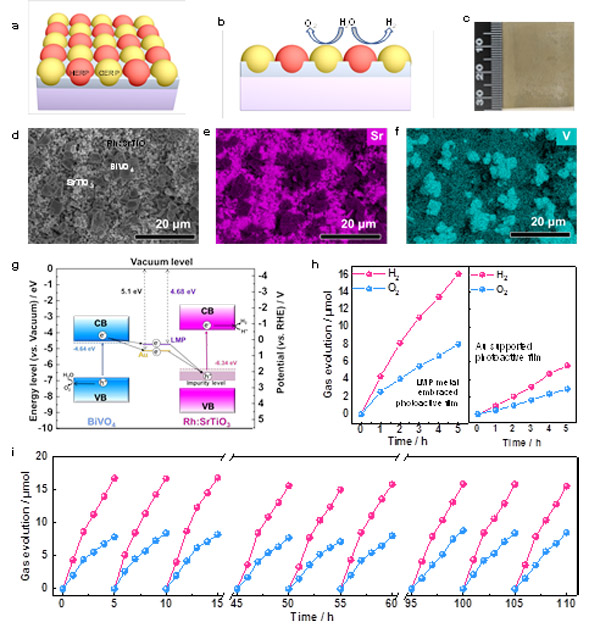 圖4. 利用半導(dǎo)體顆粒植入技術(shù)構(gòu)建的嵌入式Z型仿生人工光合成面板及其可見光驅(qū)動的全分解水活性評價
