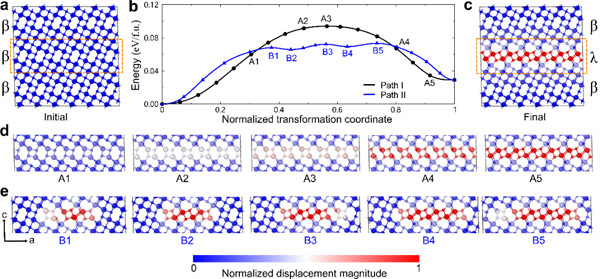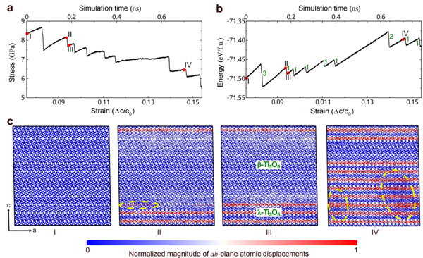 圖3. 亞氧化鈦 - 相變的大尺度原子模擬揭示的逐層轉(zhuǎn)變機制