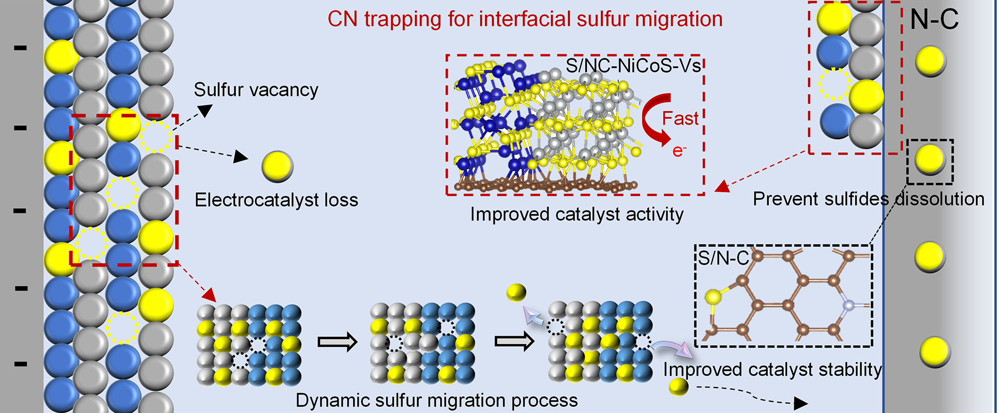 過渡金屬硫化物(TMSs)因其優(yōu)異的催化活性,在氫析出反應 (HER)中備受關注。雖然TMSs在析氫過程中的表面重構可以顯著提升HER活性,但通常伴隨著硫組分的部分流失和缺陷的形成,這種硫原子的不可逆流失將導致TMSs長期穩(wěn)定性下降、性能迅速衰減等問題。因此,實現(xiàn)對TMSs中硫浸出的精確調(diào)控對于保持催化劑的高活性和耐久性至關重要。
