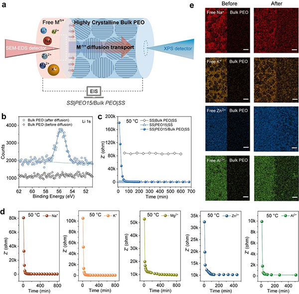 圖1. 高結晶PEO塊體中的離子自適應擴散現(xiàn)象