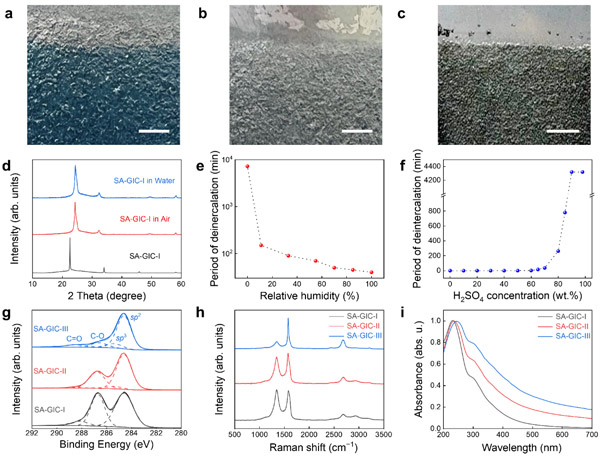 圖1. 水吸附導(dǎo)致硫酸插層石墨的脫插層及其對電解水制備GO的影響