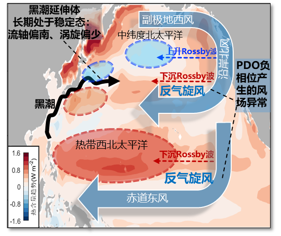圖2?太平洋年代際振蕩PDO主導北太平洋熱量存儲格局的機制示意圖