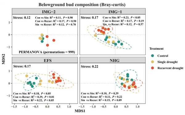 首次干旱和反復(fù)極端干旱對地下芽庫群落組成的影響
