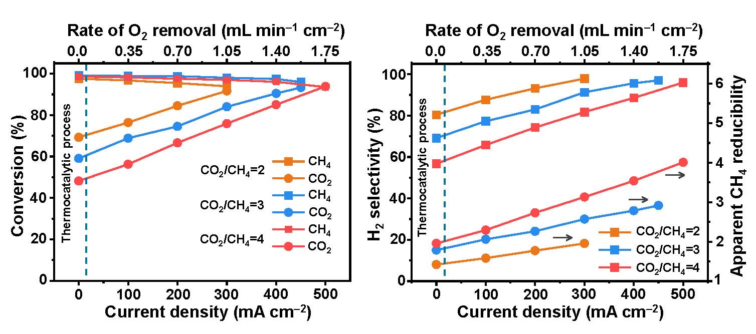 相關(guān)研究成果以“Super-dry reforming of methane using a tandem electro-thermocatalytic system”為題,發(fā)表在《自然-化學(xué)》(Nature Chemistry)上。該工作的共同第一作者是大連化物所呂厚甫博士、李榮坦博士和董雪博士。上述工作得到國家重點研發(fā)計劃、國家自然科學(xué)基金、遼寧濱海實驗室等項目的資助。