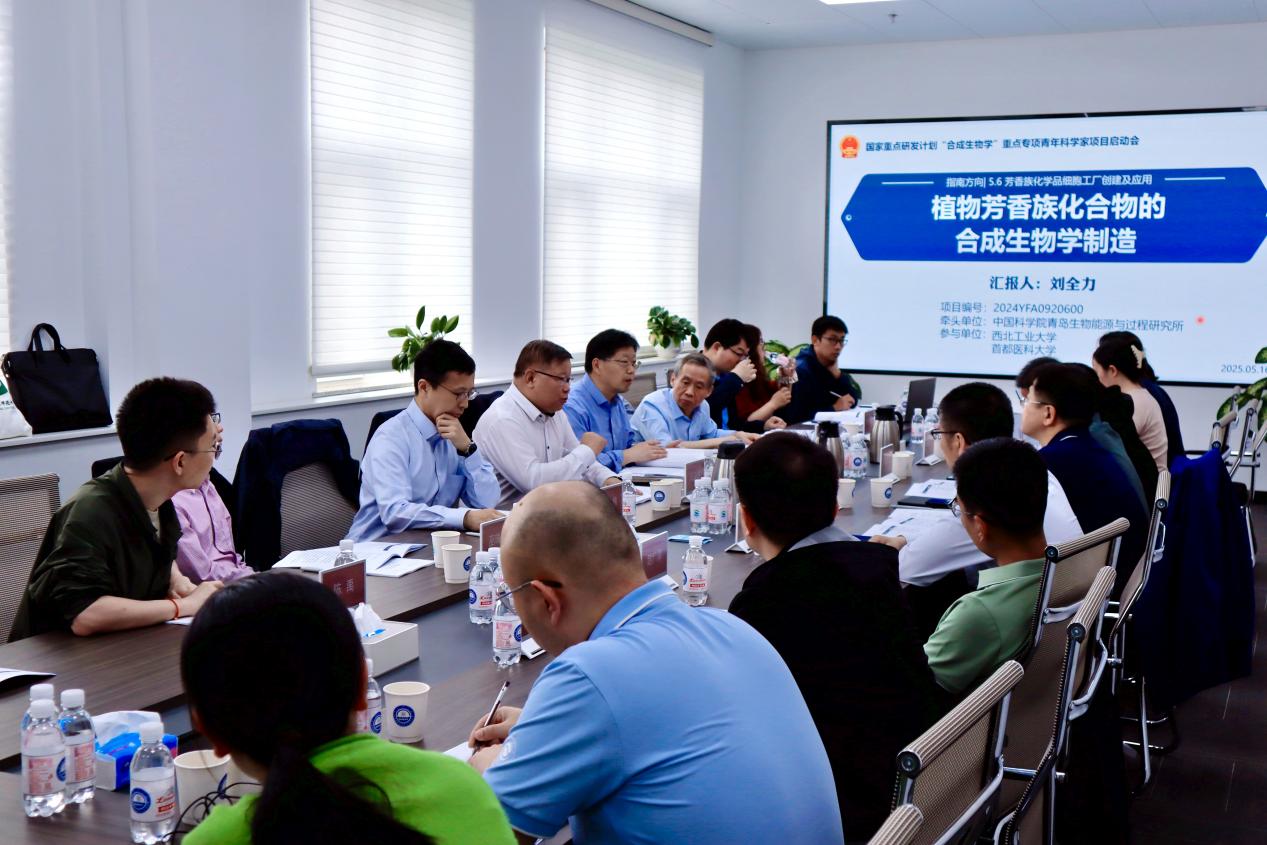 5月16日,國家重點研發(fā)計劃“合成生物學(xué)”重點專項“植物芳香族化合物的合成生物學(xué)制造”青年科學(xué)家項目啟動會暨實施方案論證會在青島召開。該項目由青島能源所牽頭,微生物制造工程中心劉全力研究員擔(dān)任項目負責(zé)人,聯(lián)合西北工業(yè)大學(xué)、首都醫(yī)科大學(xué)共同承擔(dān),針對重要植物芳香族化合物產(chǎn)業(yè)化升級的重大需求,以微生物底盤代謝網(wǎng)絡(luò)高效解析與定向重塑為基礎(chǔ),以搭建多維度生物合成關(guān)鍵元件挖掘與改良平臺為抓手,創(chuàng)建標(biāo)準(zhǔn)化高效人工生物合成體系,實施噸級工程化生產(chǎn)示范,推動植物芳香族化合物開發(fā)與應(yīng)用的創(chuàng)新變革。