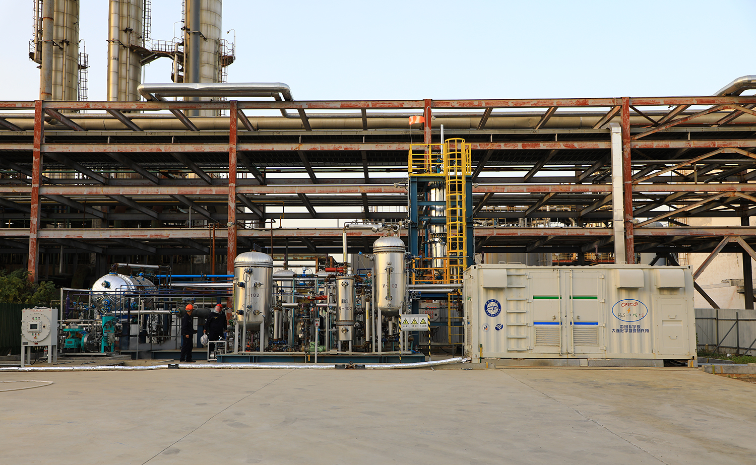 基于該技術(shù),李燦團(tuán)隊還聯(lián)合山東三維化學(xué)集團(tuán)股份有限公司、榆林中科潔凈能源創(chuàng)新研究院、灝鳴能源科技?(大連)?有限公司合作,在煤化工領(lǐng)域開展了10萬方/年硫化氫消除與資源化利用的工業(yè)示范項目。其主要包含四個方面的技術(shù)創(chuàng)新:?離場電催化全分解硫化氫制氫和硫磺技術(shù);高效率、高穩(wěn)定性的電化學(xué)池及系統(tǒng);高轉(zhuǎn)化率、高效分離的硫化氫氧化熔融一體反應(yīng)系統(tǒng);高品質(zhì)硫磺和高純氫氣回收技術(shù)。