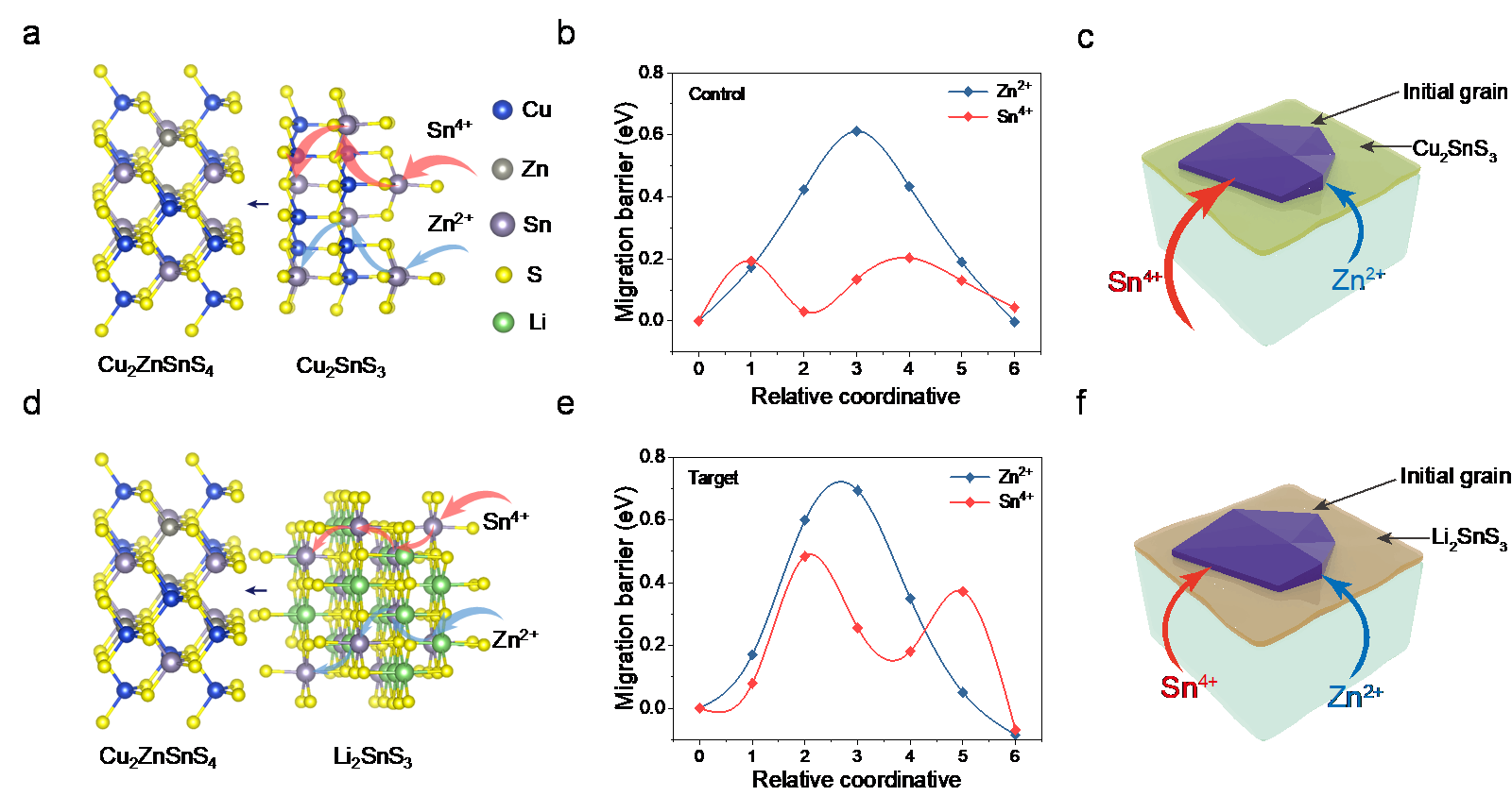 近日,青島能源所固態(tài)能源系統(tǒng)技術(shù)中心在崔光磊研究員帶領(lǐng)下,由邵志鵬、崔長(zhǎng)城博士等圍繞CZTSSe光伏硒化相變過(guò)程中“金屬離子遷移不可控”這一核心技術(shù)難題,提出了Li?SnS?界面相平衡調(diào)控金屬離子遷移、進(jìn)而輔助晶粒相變生長(zhǎng)的新機(jī)制,攻克了CZTSSe光伏相變不可控制、開(kāi)路電壓偏低、光電轉(zhuǎn)換效率不足等系列科學(xué)與技術(shù)難題。