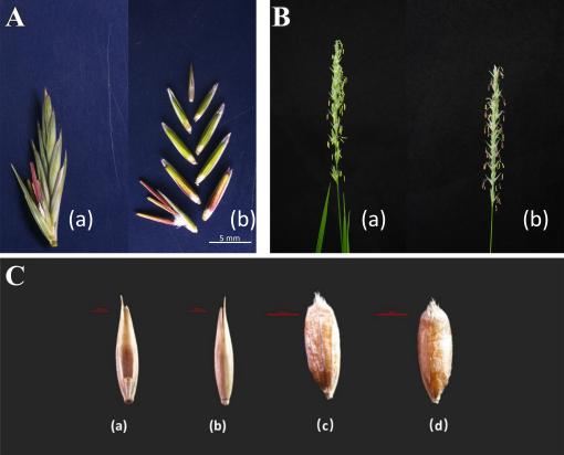 圖2 羊草小穗結(jié)構(gòu)及穎果的形態(tài)特征