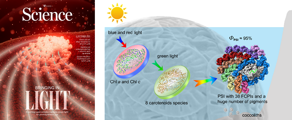圖1 Science封面報道以及赫胥黎艾氏藻的PS I-FCPI超復(fù)合體模型