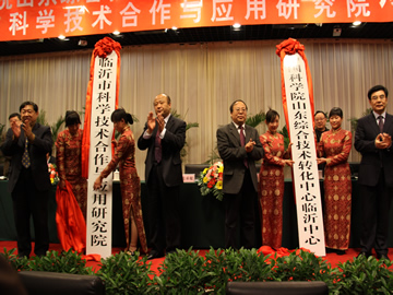 2008年12月24日,中國科學(xué)院山東綜合技術(shù)轉(zhuǎn)化中心臨沂中心暨臨沂市科學(xué)技術(shù)合作與應(yīng)用研究院成立大會在臨沂市舉行。中科院沈陽分院院長王慶禮,省科技廳副廳長王家利,省科學(xué)院黨委書記李海艦,臨沂市委書記連承敏,市長張少軍,市人大常委會副主任杜甲普,副市長左沛廷,市政協(xié)副主席楊榮三,中科院山東中心主任王曉斌、副主任趙家緒等出席大會。