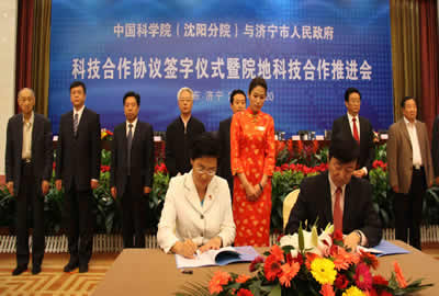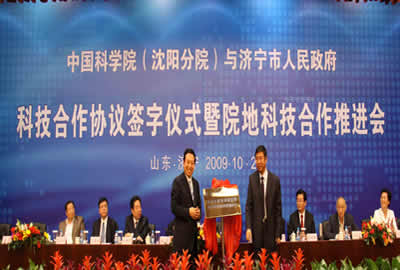 2009年10月20日,中國科學(xué)院沈陽分院與濟(jì)寧市人民政府科技合作協(xié)議簽字儀式暨院地科技合作推進(jìn)會在濟(jì)寧召開。中科院院地合作局局長戚強(qiáng),中科院沈陽分院副院長韓恩厚,山東省科技廳副廳長、中科院山東綜合技術(shù)轉(zhuǎn)化中心主任王曉斌,中科院沈陽計算公司董事長林滸,中科院大連化物所、金屬所、沈陽自動化所、沈陽應(yīng)用生態(tài)所、海洋所、沈陽計算公司、力學(xué)所、過程所、理化所、植物所、微生物所、生態(tài)環(huán)境中心、遺傳發(fā)育所農(nóng)業(yè)發(fā)展中心(原石家莊農(nóng)業(yè)現(xiàn)代化所)、上海生科院、蘭州化物所、長春光機(jī)所、長春應(yīng)化所、中科院老專家技術(shù)中心等18個單位的41位專家和濟(jì)寧市委、市政府、市人大、市政協(xié)的有關(guān)領(lǐng)導(dǎo)、濟(jì)寧市的100余家企業(yè)的技術(shù)人員和領(lǐng)導(dǎo)參加了會議。