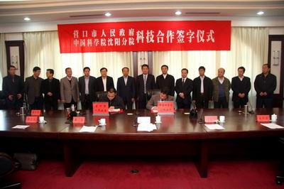 2009年11月18日,中國(guó)科學(xué)院沈陽(yáng)分院與營(yíng)口市人民政府續(xù)簽了全面科技合作協(xié)議,簽約儀式在營(yíng)口市政府707會(huì)議室舉行。沈陽(yáng)分院黨組書(shū)記、副院長(zhǎng)馬思、副院長(zhǎng)梁波,營(yíng)口市委書(shū)記趙化明、市長(zhǎng)高軍、副市長(zhǎng)唐心恩參加簽字儀式。沈陽(yáng)分院系統(tǒng)7個(gè)研究所(公司)主管院地合作工作的副所長(zhǎng)(副總裁)、科技處負(fù)責(zé)人同相關(guān)科技人員,以及營(yíng)口市相關(guān)部門(mén)的領(lǐng)導(dǎo)和企業(yè)家參加了簽約儀式。