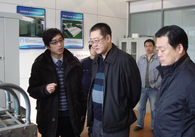 在馮埃生副所長等人的陪同下,李兵主任一行參觀了液流儲能電池實驗室。張宇博士詳細介紹了全釩液流儲能電池技術進展情況以及產業(yè)化應用前景。李兵主任對大連化物所在全釩液流儲能電池技術開發(fā)和產業(yè)化推進方面所取得的成績給予了充分肯定,鼓勵科研人員加快研發(fā)和產業(yè)化進度,配合遼寧省新能源戰(zhàn)略的實施,促進遼寧省產業(yè)結構升級,省經信委將在液流儲能電池的應用示范和產業(yè)化等方面給予大力支持。