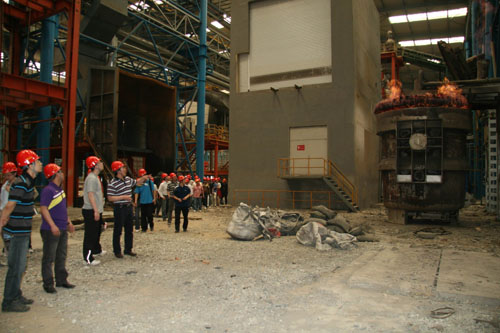5月28日上午,金屬所青年職工代表團(tuán)首先來到了鞍鋼重型機(jī)械有限責(zé)任公司。鞍重于洪順總經(jīng)理、董曉亮副總經(jīng)理等公司領(lǐng)導(dǎo)接待了我所青年職工代表團(tuán)。我所青年職工代表通過聆聽、收看報(bào)告和宣傳片了解了企業(yè)的發(fā)展情況,并參觀了生產(chǎn)現(xiàn)場(chǎng)。鞍重作為一個(gè)有著70多年發(fā)展歷史的國(guó)有大型企業(yè),近年來依靠走科技興企之路,探索出了一條老企業(yè)改造的新路,企業(yè)實(shí)現(xiàn)了跨越式發(fā)展,已經(jīng)成為國(guó)內(nèi)鋼鐵企業(yè)中最大的冶金成套產(chǎn)品制造基地。置身于規(guī)模宏大、設(shè)備先進(jìn)的生產(chǎn)現(xiàn)場(chǎng),親眼目睹依靠科技進(jìn)步,特別是與金屬所開展科技合作利用“可視化鑄造技術(shù)”成功制造出的國(guó)產(chǎn)三峽水輪機(jī)轉(zhuǎn)輪下環(huán)、大型船用曲軸曲拐、鑄鋼支撐輥等曾經(jīng)制約我國(guó)裝備制造業(yè)發(fā)展的關(guān)鍵大型鑄鍛件,大家都切身感受到了科技創(chuàng)新在提升企業(yè)核心競(jìng)爭(zhēng)力中發(fā)揮的重要作用,切身感受到了企業(yè)發(fā)展對(duì)科技自主創(chuàng)新的強(qiáng)烈需求,更為能成為金屬所的一員而感到驕傲和自豪。