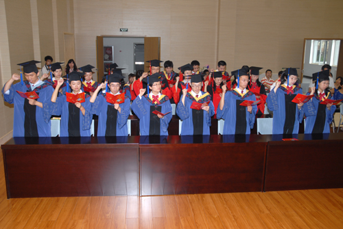 典禮在莊嚴的國歌聲中拉開帷幕。首先施平所長致辭,祝賀研究所首批研究生順利畢業(yè),感謝他們選擇海岸帶所并與海岸帶所一起成長,對他們3年來作出的貢獻表示肯定和感謝,并勉勵全體畢業(yè)生今后在不同的崗位上繼續(xù)努力工作,也希望他們能“?;丶铱纯础保^續(xù)為海岸帶所的發(fā)展獻計獻策。導(dǎo)師代表秦偉研究員向全體畢業(yè)研究生表示祝賀,祝愿他們的未來更加美好,也感謝首屆研究生在研究所創(chuàng)建過程中無私的奉獻。畢業(yè)生代表董方代表全體畢業(yè)研究生對3年來培養(yǎng)、關(guān)心和幫助自己的海岸帶所領(lǐng)導(dǎo)、導(dǎo)師、同學(xué)及父母表示深切的感謝,并決心今后更加扎實努力工作。隨后全體畢業(yè)生莊嚴宣誓,謹記科學(xué)院精神、肩負海岸帶使命、為國家的需求和科學(xué)事業(yè)奮斗。