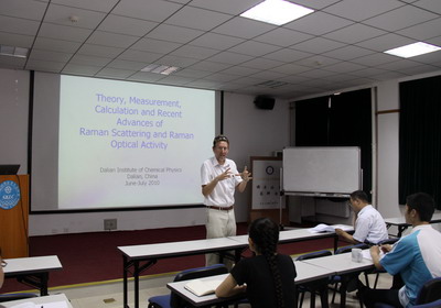 《Journal of Raman Spectroscopy》雜志主編、美國(guó)雪城大學(xué)Laurence A. Nafie教授于6月-7月間應(yīng)邀到中科院大連化學(xué)物理研究所訪問,并為研究人員和青年學(xué)生進(jìn)行了九場(chǎng)題為“Theory, Measurement, Calculation and Recent Advances of Raman Scattering and Raman Optical Activity”的拉曼光譜系列講座。在為期一個(gè)月的講座中,Nafie教授就拉曼光譜、手性拉曼光譜的基本原理、儀器布局、計(jì)算方法、研究進(jìn)展及發(fā)展方向等進(jìn)行了詳細(xì)的闡述,與大連化物所師生進(jìn)行了深入的學(xué)術(shù)交流,共同探討手性光譜科學(xué)問題和未來發(fā)展趨勢(shì),并與該所就手性振動(dòng)光譜研制和改造達(dá)成了進(jìn)一步合作意向。