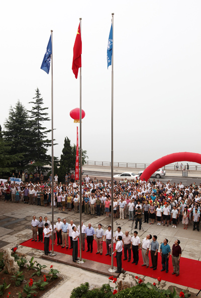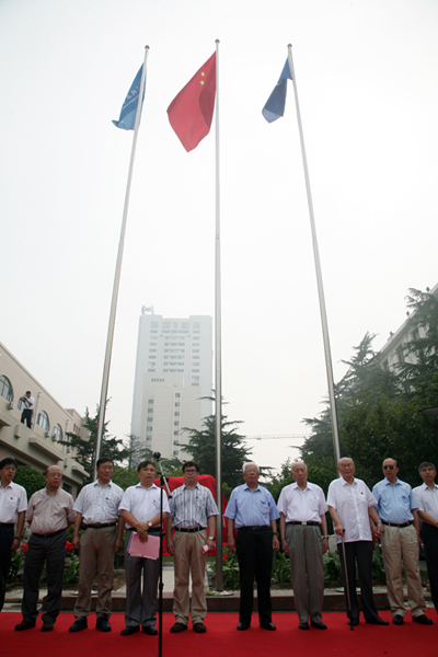 在莊嚴(yán)的國(guó)歌聲中,國(guó)旗、院旗和所旗在充滿希望的晨曦里相繼冉冉升起,大家滿懷深情和喜悅莊重地行注目禮。