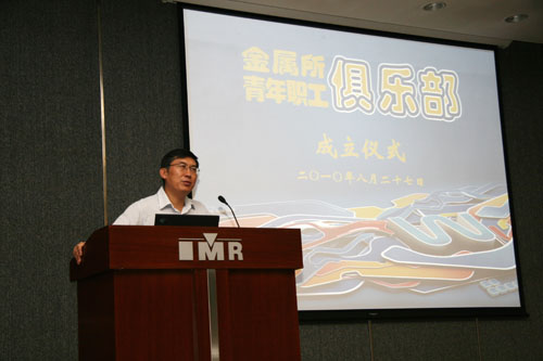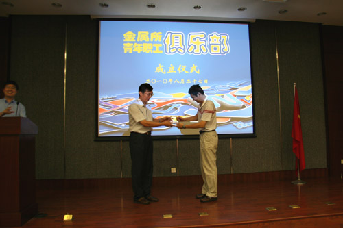 盧柯所長向金屬所青年職工俱樂部首任秘書長張健研究員授牌,宣告俱樂部正式成立。