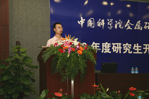 劉揚同學代表全體新生發(fā)言。他表示考入向往已久的金屬所,是大家人生的一個新起點,在這里將完成人生重要的一段歷程。新生們要努力鍛煉和提高自主學習的能力、與他人交流的能力、發(fā)現(xiàn)問題和解決問題的能力、對實驗結果的判斷分析能力、嚴密的邏輯思維能力、良好的心理承受能力等等。他用屈原的一句話與大家共勉:“路漫漫其修遠兮,吾將上下而求索”。