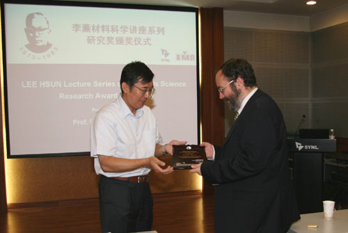 盧柯所長為Yves Brechet教授頒發(fā)李薰獎獎牌