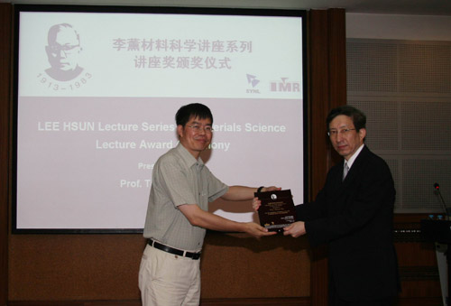 成會明常務(wù)副所長向Ohji博士頒發(fā)李薰講座獎獎牌