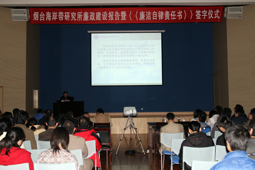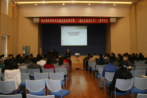 2010年11月12日,煙臺(tái)海岸帶所黨委、紀(jì)委組織了一次黨風(fēng)廉政建設(shè)研討會(huì),中國科學(xué)院監(jiān)察審計(jì)局郭建軍副局長應(yīng)邀到煙臺(tái)海岸帶所指為全所職工、研究生做了題為“加強(qiáng)反腐倡廉建設(shè)預(yù)防職務(wù)犯罪”的培訓(xùn)報(bào)告。