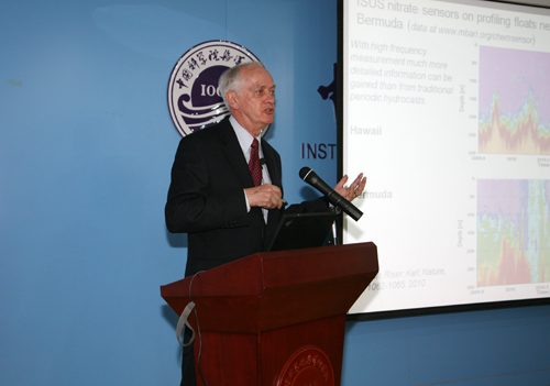 Peter G. Brewer 教授結合相關的研究成果對美國MBARI海洋研究所的海洋科學研究與技術創(chuàng)新結合的研究特色作了論述;George T F Wong教授介紹了臺灣中央研究院環(huán)境變化研究中心的概況并就其研究所近期的研究熱點進行了綜述。