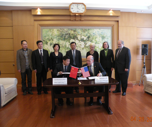 4月28日,在大連市長(zhǎng)李萬(wàn)才會(huì)見(jiàn)期間,姬蘭柱書(shū)記和Richard Lariviere 校長(zhǎng)分別代表雙方機(jī)構(gòu)正式簽署了合作諒解備忘錄。