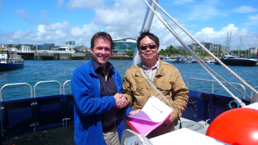 6月21日,孫松所長(zhǎng)率隊(duì)訪(fǎng)問(wèn)英國(guó)普利茅斯大學(xué)海洋研究所(UoPMI),并與研究所所長(zhǎng)Martin Attrill教授在英國(guó)普利茅斯灣Falcon Spirit考察船上簽訂兩所科技合作備忘錄。