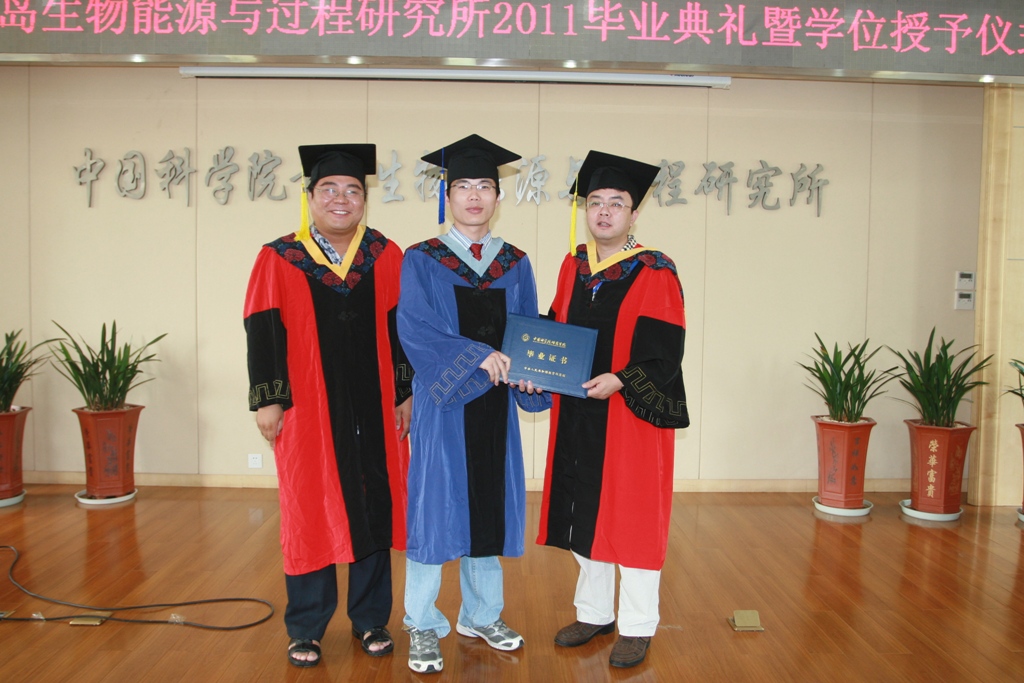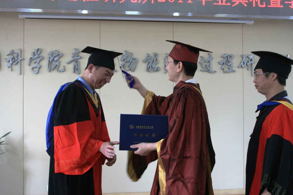 6月30日,中國(guó)科學(xué)院青島生物能源與過(guò)程所2011年度研究生畢業(yè)典禮暨學(xué)位授予儀式于在研究所報(bào)告廳隆重舉行。研究所所長(zhǎng)、學(xué)位評(píng)定委員會(huì)主席、博士生導(dǎo)師王利生研究員,副所長(zhǎng)、副主席、博士生導(dǎo)師彭輝研究員,導(dǎo)師代表、全體研究生出席了典禮,共同慶祝這一美好時(shí)刻。