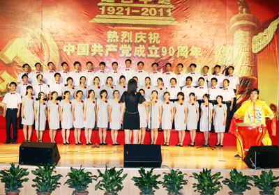 最后,與會(huì)領(lǐng)導(dǎo)和廣大職工、研究生一起欣賞了文藝演出。十五室和1901組聯(lián)隊(duì)的合唱《我愛你,中國》、《精忠報(bào)國》,一室和公共分析測(cè)試組的合唱《我的中國心》、《加油,中國》,五室的合唱《我和我的祖國》、《大連化物所所歌》,天邦公司的合唱《中國進(jìn)行曲》、《愛我中華》,老年大學(xué)合唱團(tuán)的《江山》、《把一切獻(xiàn)給黨》,依利特公司的合唱《北京的金山上》、《天路》,一首首歌曲豪邁昂揚(yáng),抒發(fā)了奮戰(zhàn)在科技一線的廣大職工熱愛黨、歌頌黨、祝福黨、“把一切獻(xiàn)給黨”的真摯情懷。退休職工的舞蹈《繡紅旗》、在職職工的舞蹈《映山紅》、青年職工和研究生表演的情景劇《黨的女兒》、退休職工的喜慶腰鼓《越來越好》,擷取了一個(gè)個(gè)歷史片斷,展現(xiàn)了中國共產(chǎn)黨從誕生到壯大到引領(lǐng)各族人民走向輝煌的奮斗篇章,頌揚(yáng)了一名優(yōu)秀的共產(chǎn)黨員就是一面光輝的旗幟的崇高品質(zhì)。氣勢(shì)雄壯、感情充沛的七室和管理及支撐部門的80余人大合唱《走向復(fù)興》,把演出推向了高潮。