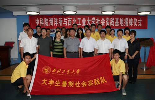 7月12日,“西北工業(yè)大學(xué)與中科院海洋所社會(huì)實(shí)踐基地”在海洋研究所揭牌。海洋所副所長(zhǎng)李鐵剛、西北工業(yè)大學(xué)副校長(zhǎng)胥效文等領(lǐng)導(dǎo)出席了揭牌儀式,海洋所博士實(shí)踐團(tuán)和西北工業(yè)大學(xué)學(xué)生代表參加了揭牌儀式。