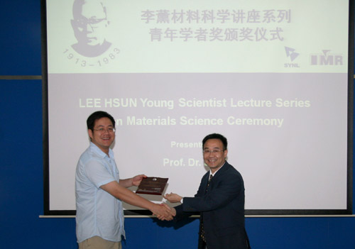 來訪期間,李巨教授作了題為“Plumber's Wonderland Found on Graphene”的精彩學術報告,介紹了他們組與美國Sandia國家實驗室黃建宇(1996年于金屬所獲博士學位)組合作,結合原子模擬和電子顯微學研究對石墨烯的微觀結構進行剪裁的研究結果,生動闡述了計算模擬方法與手段在揭示實驗現(xiàn)象本質(zhì)和啟發(fā)新材料研究思路方面的不可替代的作用。李巨教授的報告引起與會的金屬所研究人員和研究生的濃厚興趣,雙方在報告討論階段進行了熱烈的交流。報告前,金屬所楊銳副所長為李巨教授頒發(fā)了李薰青年學者獎獎牌。來訪期間,李巨還參加了我所主辦的“材料電子顯微學國際學術研討會暨第四屆郭可信電子顯微學與晶體學暑期班”,并與鈦合金研究部徐東生研究組和工程合金研究部郝玉琳研究組分別針對材料變形計算模擬和Ti2448合金變形行為進行了交流。