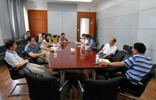 圖3 李巨教授、John Hopkins大學馬恩教授和西安交通大學單智偉教授等在鈦合金研究部進行交流
