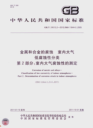 有別于戶外大氣,室內(nèi)大氣有其特殊性,它與室內(nèi)生產(chǎn)環(huán)境、擺放物體或設(shè)備有關(guān),也存在不同程度的腐蝕性。目前我國室內(nèi)大氣低腐蝕性分類方面國家標準尚屬空白,因此急需在引進、消化、吸收國外先進技術(shù)標準的基礎(chǔ)上,結(jié)合我國的實際需要,制定相應(yīng)的國家標準?!禛B/T 24513.2-2010金屬和合金的腐蝕 室內(nèi)大氣低腐蝕性分類 第2部分:室內(nèi)大氣腐蝕性的測定》可表征對金屬和金屬覆蓋層在存儲、運輸、安裝或操作使用期間有影響的低腐蝕性的室內(nèi)大氣環(huán)境。該標準根據(jù)標準試樣受到的腐蝕作用來確定室內(nèi)大氣腐蝕性分類,并規(guī)定了適合作為室內(nèi)大氣腐蝕性評價基礎(chǔ)的重要參數(shù)。