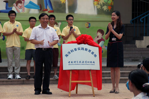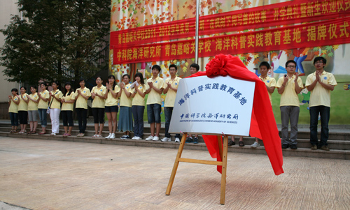 9月1日,在青島嘉峪關(guān)小學(xué)2011—2012學(xué)年度第一學(xué)期開學(xué)典禮暨升旗儀式上,中科院海洋所——青島市嘉峪關(guān)小學(xué)“海洋科普實(shí)踐教育基地”正式揭牌。
