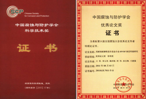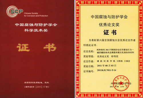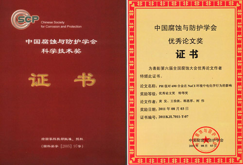 另外,會議期間還舉行了中國腐蝕與防護學會優(yōu)秀論文獎的頒獎儀式。中國腐蝕與防護學會優(yōu)秀論文獎是中國腐蝕與防護學會科學技術(shù)獎中的一個獎項。2005年中國腐蝕與防護學會在國家科學技術(shù)獎勵工作辦公室注冊登記了科學技術(shù)獎(國科獎字[2005]97號文,登記證書編號:國科獎社證字第0138號),下設科技發(fā)明獎、科技進步獎、優(yōu)秀論文獎和國際科學技術(shù)合作獎等4個獎項。自2007年啟動科技進步獎以來,本次是首次啟動優(yōu)秀論文獎。本次大會共收到學術(shù)論文摘要350余篇,論文全文280余篇,經(jīng)同行專家認真篩選和評審,評選出優(yōu)秀論文45篇,其中特等獎15篇,一等獎30篇。其中,金屬所6篇論文榜上有名,3篇論文獲優(yōu)秀論文特等獎,3篇論文獲優(yōu)秀論文一等獎。