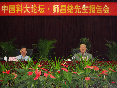 9月23日上午,2010年度國家最高科學(xué)技術(shù)獎獲得者、我國著名材料科學(xué)家、91歲高齡的師昌緒院士,應(yīng)邀到中國科學(xué)技術(shù)大學(xué)作了題為“在人生道路上”的報告。報告會由侯建國校長主持,陳初升副校長、朱長飛副校長,以及化學(xué)與材料學(xué)院的領(lǐng)導(dǎo)和300余名師生出席了報告會。