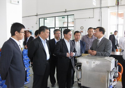 吳登昌在聽取匯報中就相關(guān)問題與大家進行交流并到現(xiàn)場指導(dǎo)工作。吳登昌對大連化物所的產(chǎn)業(yè)化工作及公司發(fā)展很感興趣,并希望同行的陜西企業(yè)與大連化物所產(chǎn)業(yè)化公司能夠加強深入的交流與合作。