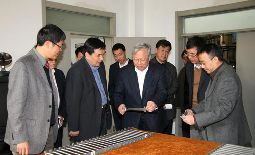 隨后,路甬祥一行來到鈦鋁化合物實(shí)驗(yàn)室視察了鈦鋁葉片研發(fā)生產(chǎn)情況。
