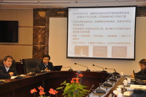 院副秘書長、戰(zhàn)略規(guī)劃局局長潘教峰在研討班上作了《實(shí)施“創(chuàng)新2020”,引領(lǐng)中國科技發(fā)展》的專題報告,全面介紹了我院“創(chuàng)新2020”組織實(shí)施方案的形成過程和主要內(nèi)容,詳細(xì)闡述了組織實(shí)施“創(chuàng)新2020”的三項(xiàng)主要舉措即先導(dǎo)專項(xiàng)、研究所一三五和區(qū)域創(chuàng)新集群建設(shè)的內(nèi)涵。最后,他對大家關(guān)心的區(qū)域創(chuàng)新集群建設(shè)問題提出了具體指導(dǎo)意見。