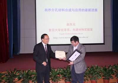 12月26日,應(yīng)中科院大連化學(xué)物理研究所邀請(qǐng),該所優(yōu)秀校友、復(fù)旦大學(xué)趙東元院士在所禮堂作了題為“有序介孔分子篩材料合成及應(yīng)用的最近進(jìn)展”的精彩報(bào)告。本次報(bào)告為張大煜講座第七場(chǎng)特邀報(bào)告。報(bào)告會(huì)由李燦院士主持,所長(zhǎng)張濤向趙東元院士頒發(fā)了所榮譽(yù)研究員證書及張大煜講座證書。田志堅(jiān)研究員、楊啟華研究員和周永貴研究員等相關(guān)領(lǐng)域科研人員及學(xué)生近200人到會(huì)聽取了報(bào)告。