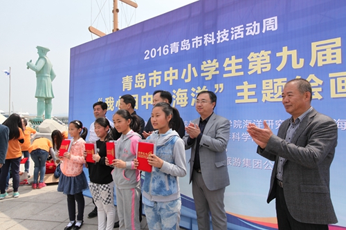 由青島市教育局、青島市科技局、中國(guó)科學(xué)院海洋研究所、中國(guó)海洋湖沼學(xué)會(huì)共同主辦,青島市少年科學(xué)院承辦的第九屆青島市中、小學(xué)生“我心目中的海洋”主題繪畫活動(dòng)在青島銀海大世界成功舉辦。本屆繪畫活動(dòng)首次通過網(wǎng)絡(luò)、微信等平臺(tái)征集作品,吸引了全市242所學(xué)校的7906名中小學(xué)生積極參與,由專業(yè)美術(shù)老師評(píng)選出一二三等獎(jiǎng)。14日上午,邀請(qǐng)到100名獲獎(jiǎng)同學(xué)到現(xiàn)場(chǎng)作畫,在百米長(zhǎng)卷上揮毫潑墨,用五彩繽紛的畫筆描繪出同學(xué)們心目中的海洋世界。青島市科協(xié)主席胡辛、海洋所黨委書記王凡等領(lǐng)導(dǎo)為獲獎(jiǎng)同學(xué)頒獎(jiǎng)。