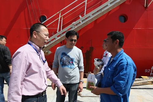 17日13:30分,隨著一聲渾厚響亮的汽笛聲,“科學(xué)”號緩緩駛?cè)胛挥谇鄭u西海岸國家級新區(qū)的中國科學(xué)院海洋研究所科學(xué)考察船基地,這也是科考船專用碼頭建成以來“科學(xué)”號首次靠泊。海洋研究所所長助理李超倫,實(shí)驗(yàn)室和科學(xué)考察船運(yùn)管中心相關(guān)人員到碼頭迎接。