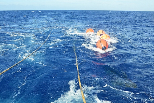 本航次歷史41天,航程8000余海里,獲取了一系列重要發(fā)現(xiàn)和研究進(jìn)展?!翱茖W(xué)”號完成雅浦海山區(qū)32個(gè)站位的熱流測量和重力取樣,同時(shí)還成功回收6臺海底地震儀(OBS),并完成300km多道地震和7000km多波束、淺剖和重磁等數(shù)據(jù)采集。其中,此次回收的海底地震儀(OBS)于2015投放,布放時(shí)間已超過14個(gè)月,是我國首次獲得雅浦海溝區(qū)連續(xù)的天然地震數(shù)據(jù),為該區(qū)的巖石圈結(jié)構(gòu)研究提供了寶貴的第一手資料。船載設(shè)備初步分析結(jié)果顯示,該海區(qū)表層沉積物以黏土、硅藻泥、有孔蟲砂為主,索羅爾海槽南部沉積物較北部更厚,可能反映了其特殊的構(gòu)造樣式。海底熱流值變化劇烈,有望揭示水熱循環(huán)在該區(qū)的活動(dòng)規(guī)律。目前,科研人員正在對所獲得的數(shù)據(jù)進(jìn)行深入分析,以期獲得雅浦海山區(qū)巖石圈在不同構(gòu)造尺度的特征,揭示卡羅琳洋脊俯沖與雅浦海溝的相互作用及其對島弧海山發(fā)育的影響機(jī)制。