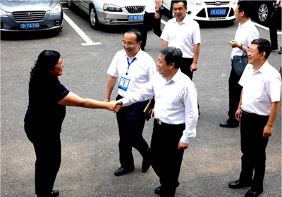尚勇一行先后參觀了低碳催化與工程研究部、太陽能研究部、航天催化與新材料研究室和化學(xué)激光研究室,分別聽取了劉中民院士、李燦院士、王曉東研究員、金玉奇研究員等人的相關(guān)科技工作匯報(bào)。尚勇對(duì)我所的甲醇制烯烴、太陽能綜合利用、汽柴油深度脫硫、航空航天推進(jìn)劑等技術(shù)的研究進(jìn)展表現(xiàn)出了濃厚的興趣,并與科研人員展開了深入交流。此外,尚勇還與剛剛獲得“中國青年科技獎(jiǎng)”的張麗華研究員進(jìn)行了親切交談。