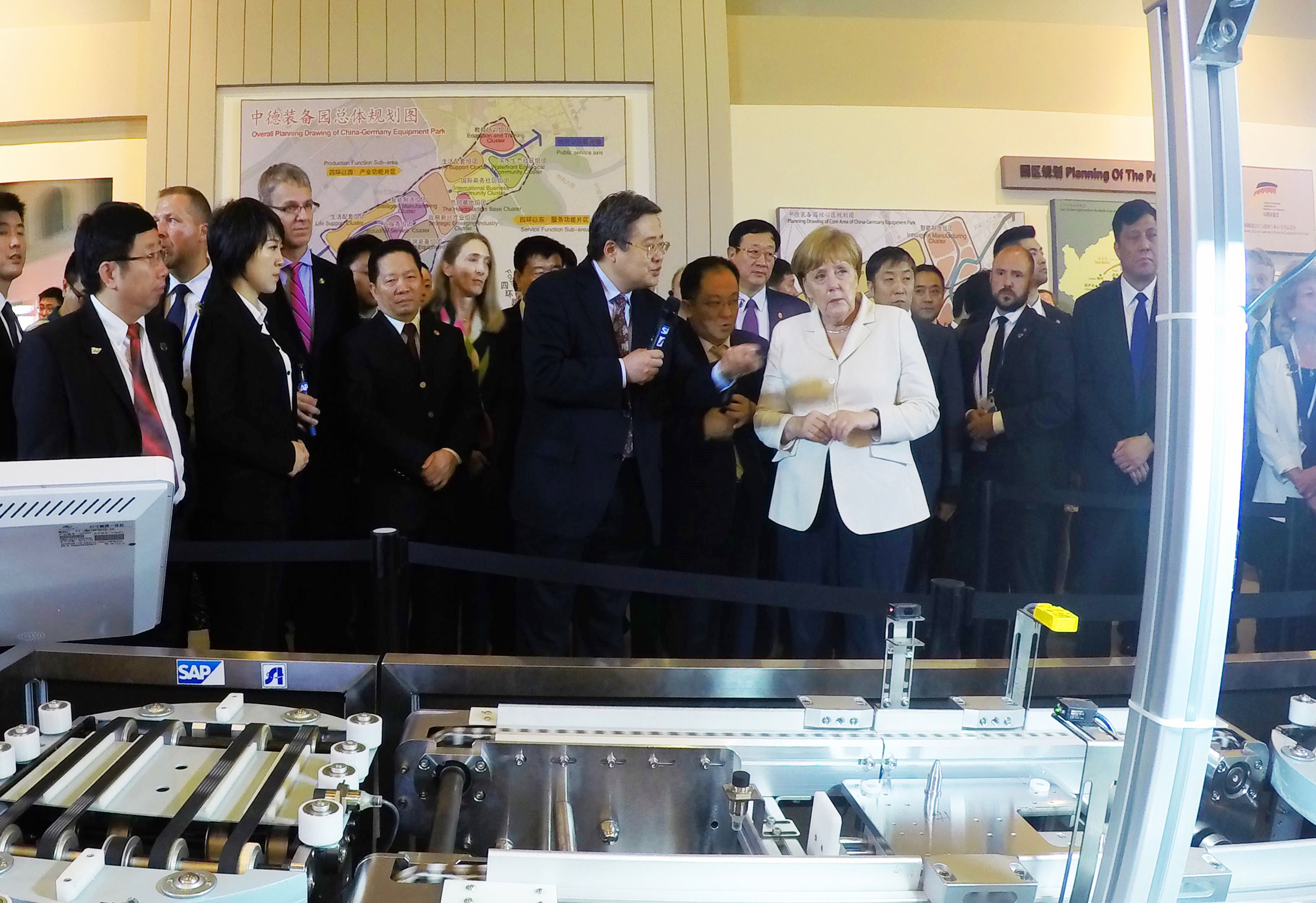 6月14日,德國總理默克爾在沈陽期間實地參觀了中國科學院沈陽自動化研究所與德國SAP公司合作研發(fā)的工業(yè)4.0示范生產(chǎn)線,并對生產(chǎn)線表現(xiàn)出極大的興趣。沈陽自動化所所長于海斌向默克爾總理詳細介紹了這條中國國內(nèi)首條工業(yè)4.0示范線。