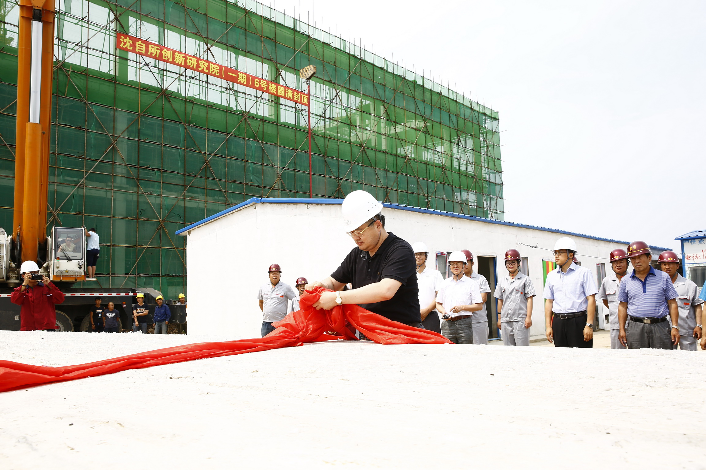 6月20日上午,中國(guó)科學(xué)院機(jī)器人與智能制造創(chuàng)新研究院建設(shè)項(xiàng)目——特種機(jī)器人實(shí)現(xiàn)中心(以下簡(jiǎn)稱6號(hào)樓)主體結(jié)構(gòu)封頂,中國(guó)科學(xué)院沈陽(yáng)自動(dòng)化研究所所長(zhǎng)于海斌,黨委書記兼副所長(zhǎng)桑子剛,所長(zhǎng)助理、綜合辦主任孫雷,基建辦全體工作人員以及各參建單位相關(guān)人員參加了封頂儀式,共同見(jiàn)證了這一激動(dòng)人心的時(shí)刻。