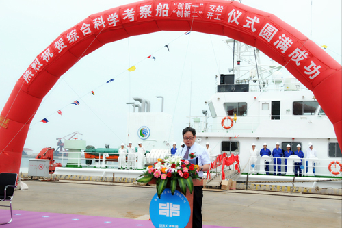 “創(chuàng)新一”號(hào)交船當(dāng)天,同時(shí)舉行了中國科學(xué)院海洋研究所300噸級(jí)河口淺水型科學(xué)考察船“創(chuàng)新二”號(hào)的開工儀式。